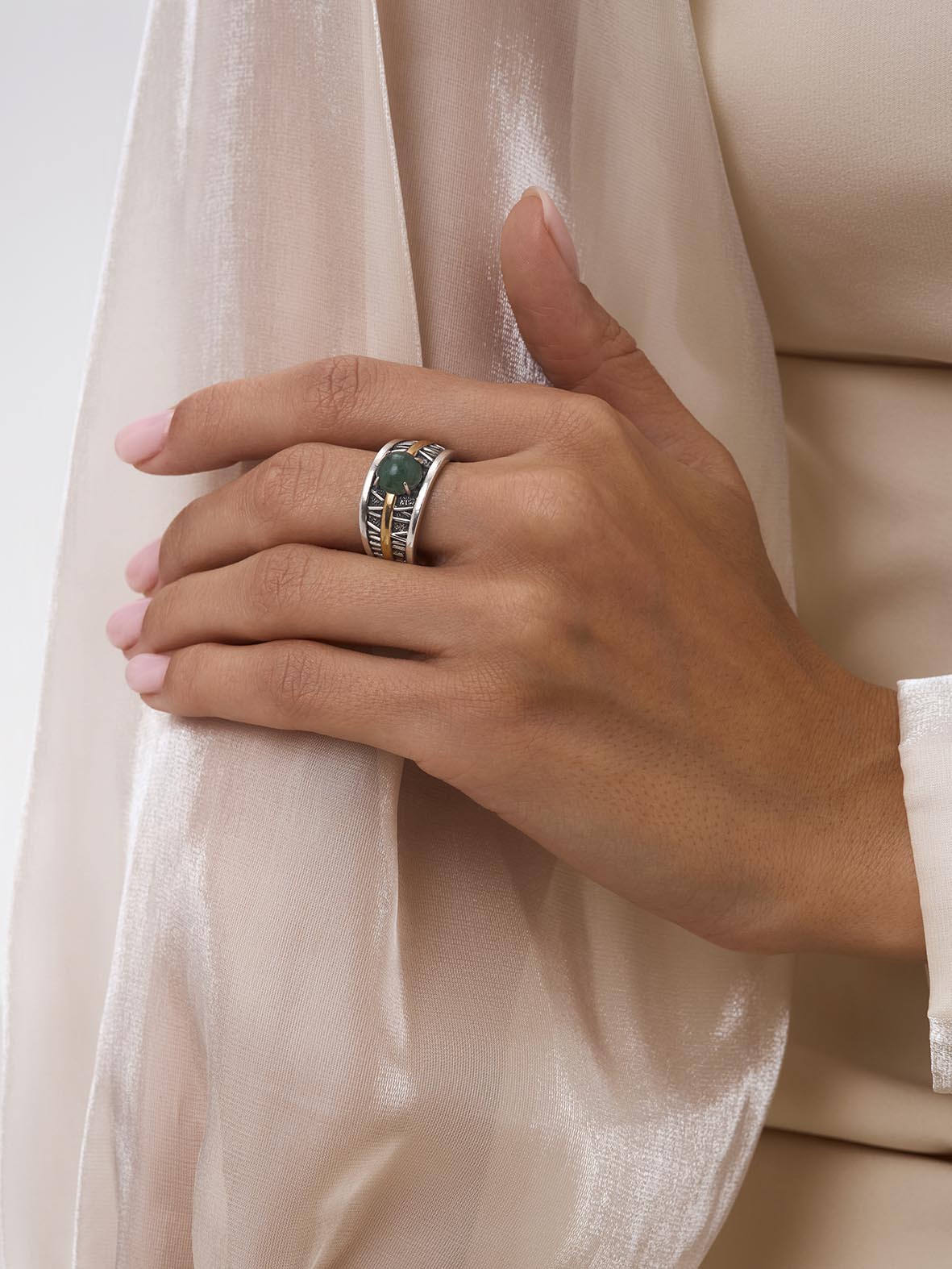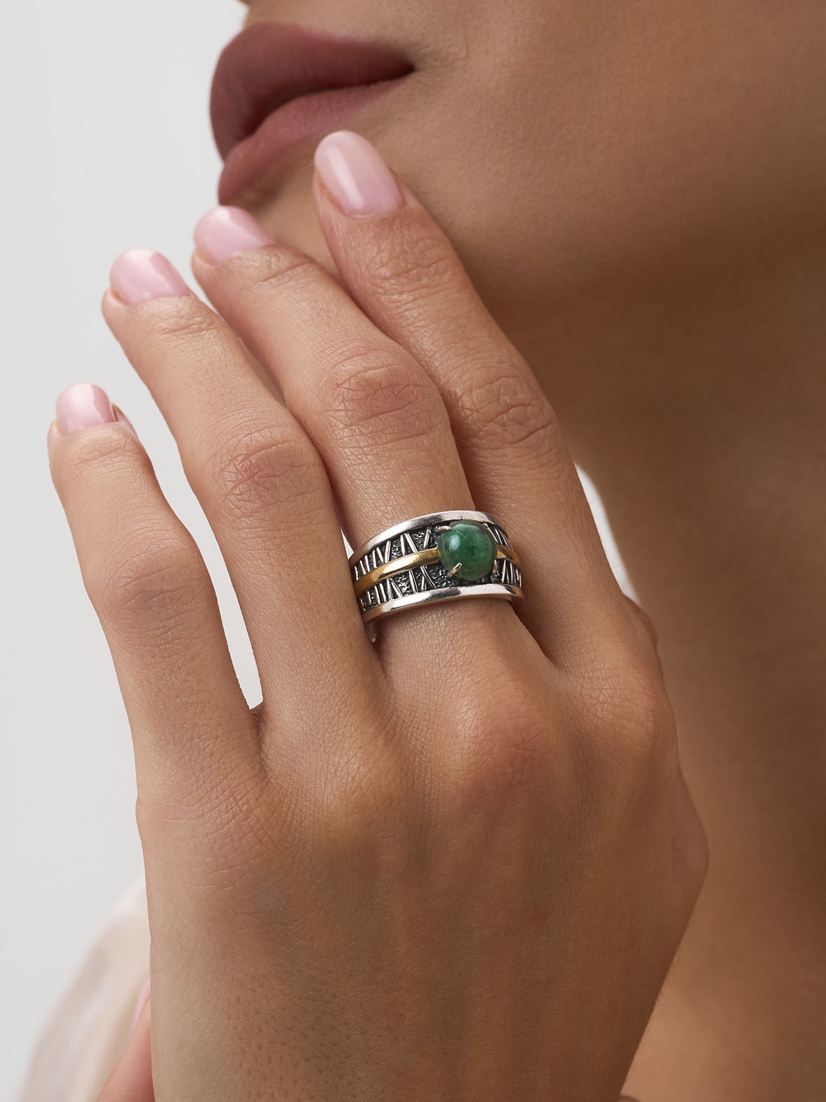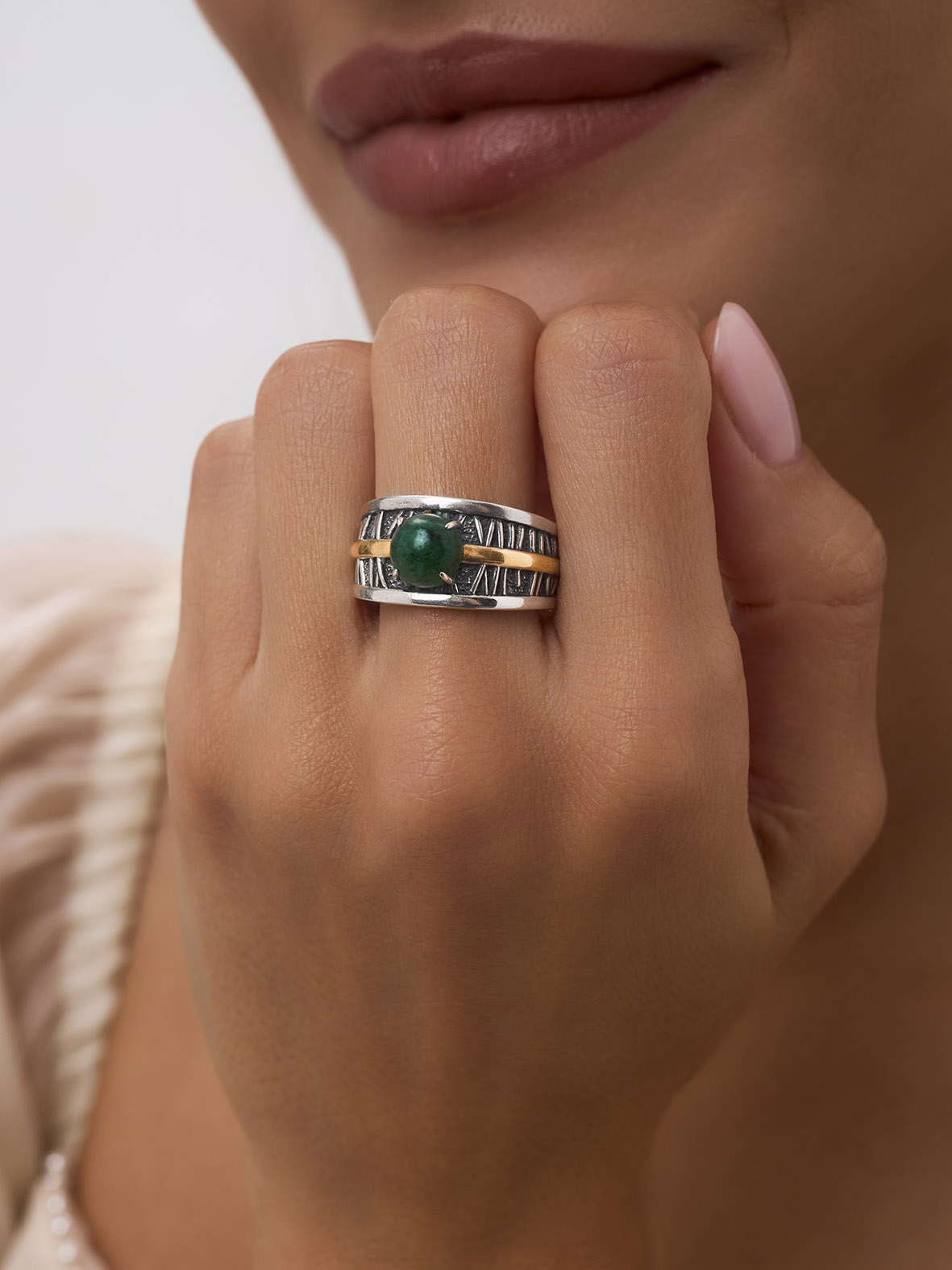 Кольцо для женщин из серебра 925 пробы с авантюрином из коллекции Игра фактур артикул 1317361754-1-60 от компании KRASNOE