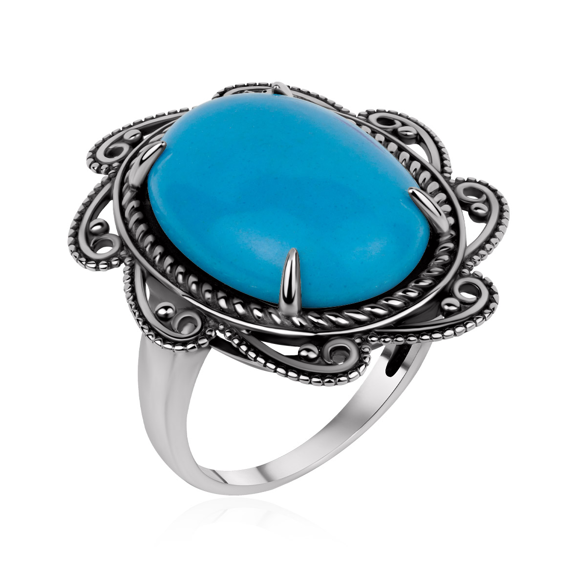 Кольцо для женщин из серебра 925 пробы с бирюзой из коллекции Филигранная артикул 1310Б26397 от компании KRASNOE