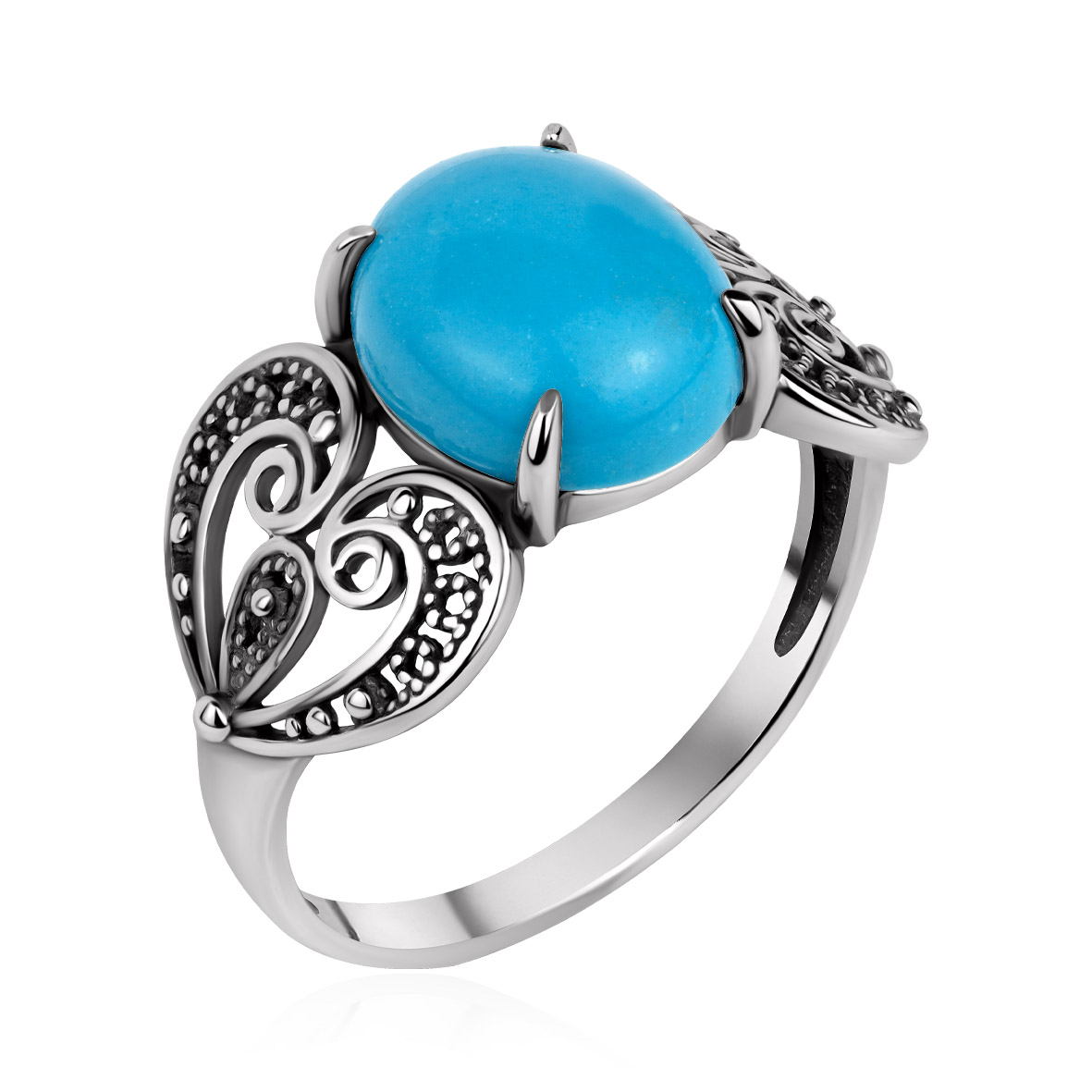 Кольцо для женщин из серебра 925 пробы с бирюзой из коллекции Филигранная артикул 1310Б26370 от компании KRASNOE