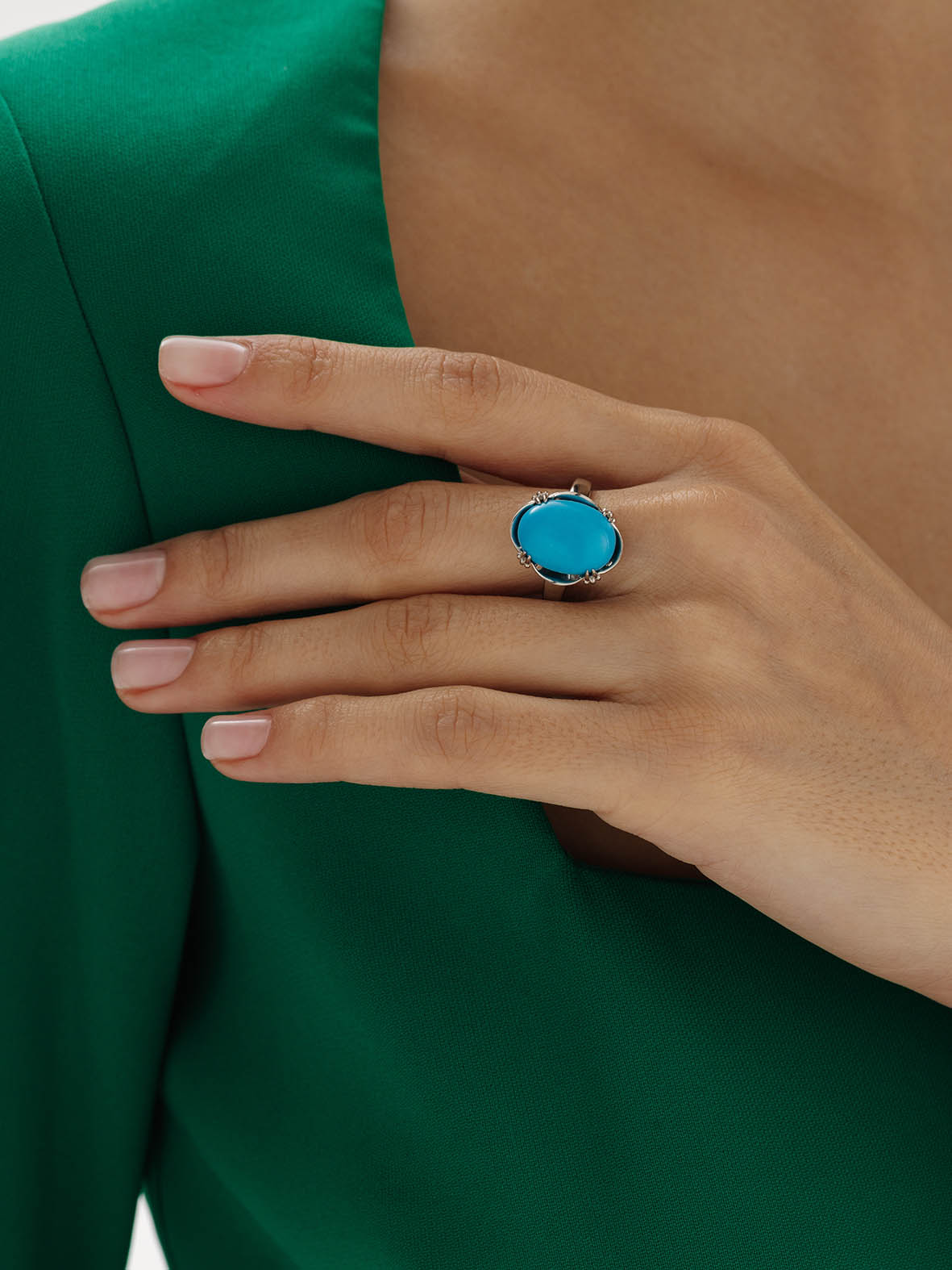 Кольцо для женщин из серебра 925 пробы с бирюзой из коллекции Уральские самоцветы артикул 1340311997 от компании KRASNOE