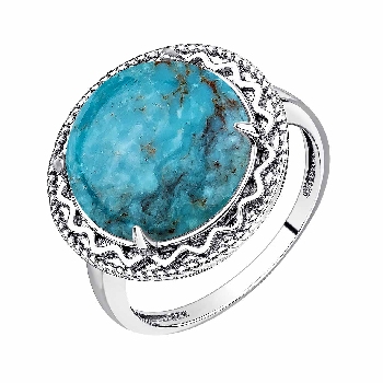 Кольцо для женщин из серебра 925 пробы с бирюзой из коллекции Уральские самоцветы артикул 1340311999 от компании KRASNOE