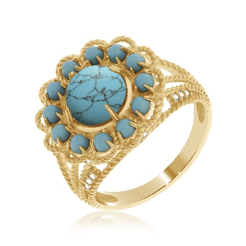 Кольцо для женщин из серебра 925 пробы с бирюзой,фианитами из коллекции Уральские самоцветы артикул 1320311883л от компании KRASNOE