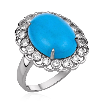 Кольцо для женщин из серебра 925 пробы с бирюзой,фианитами из коллекции New look артикул 1340Б26307 от компании KRASNOE
