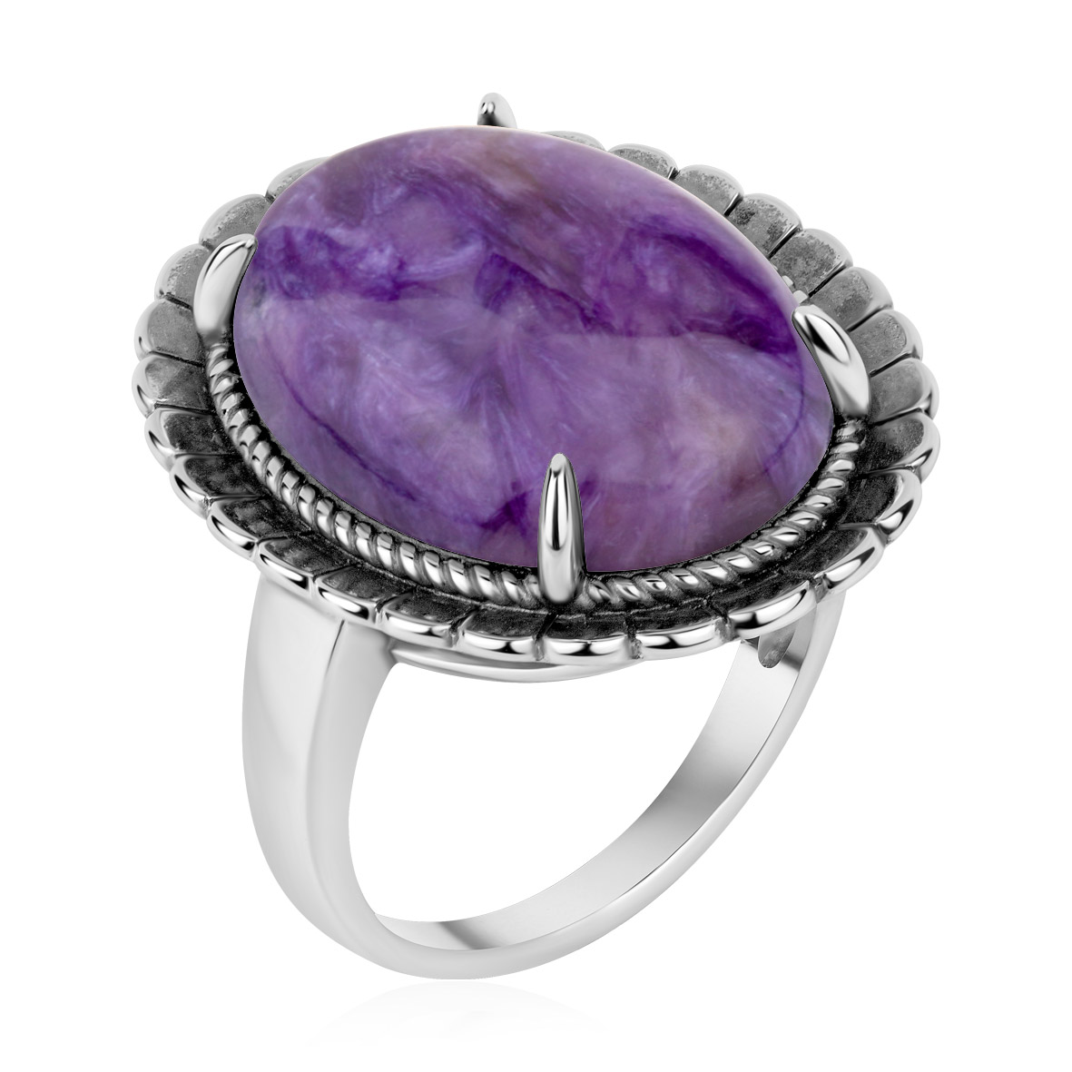 Кольцо для женщин из серебра 925 пробы с чароитом из коллекции Уральские самоцветы артикул 1310466361 от компании KRASNOE