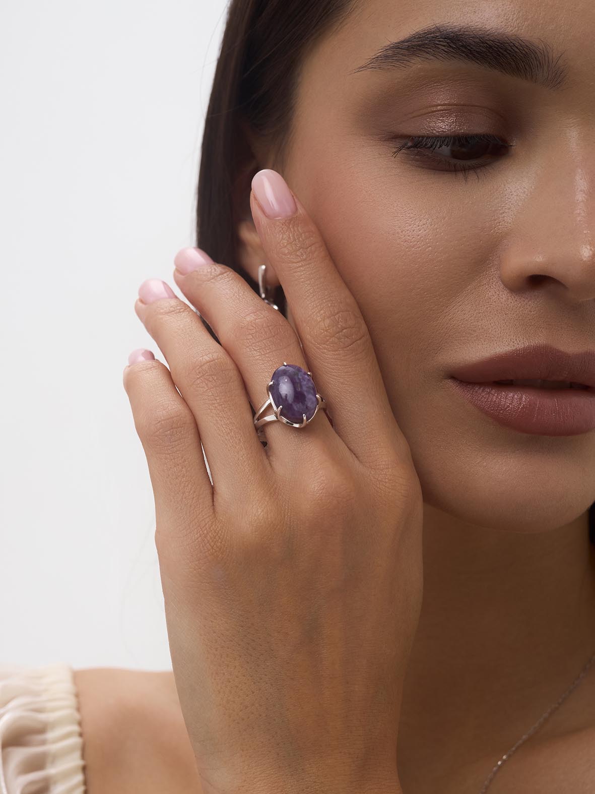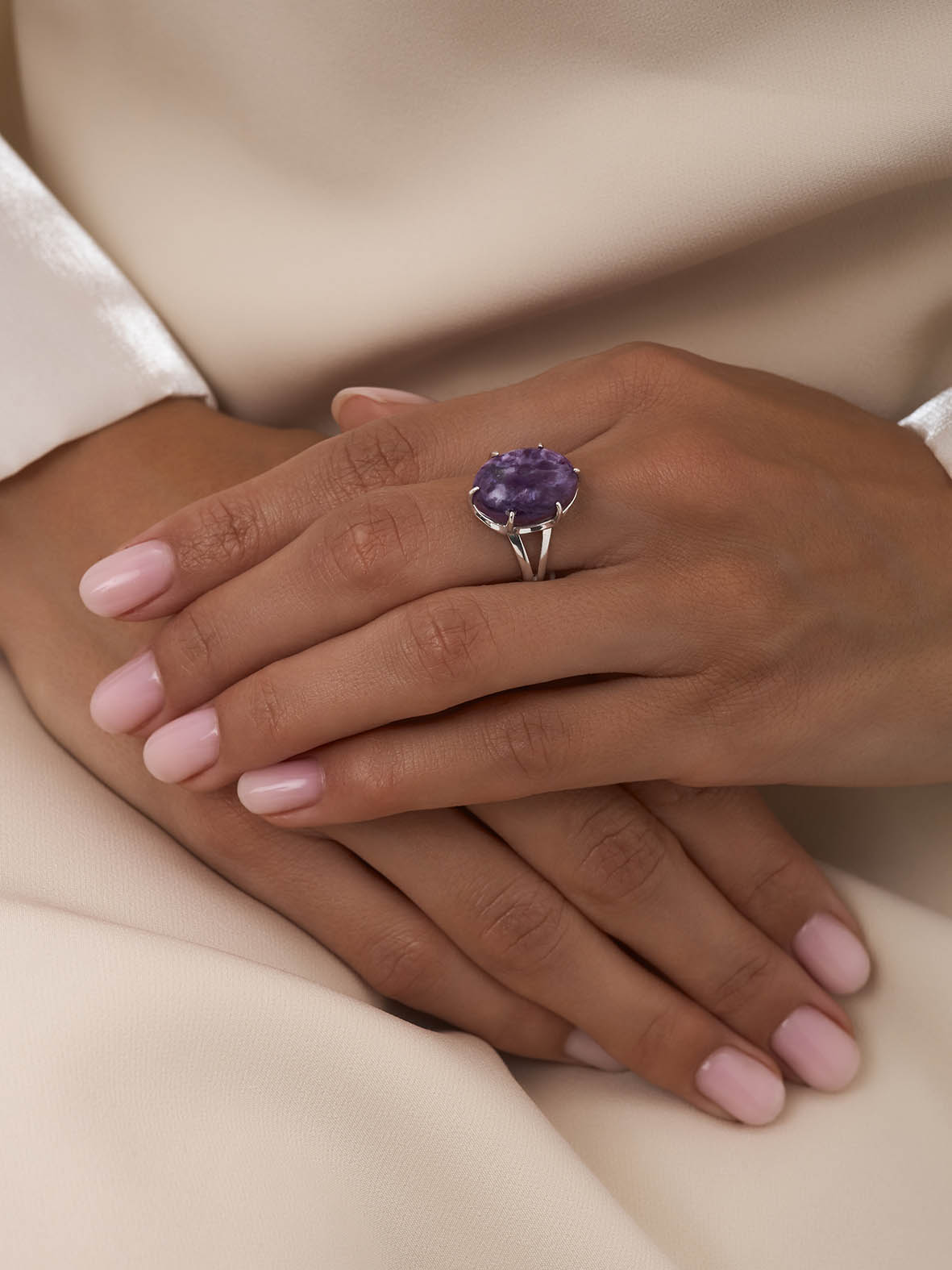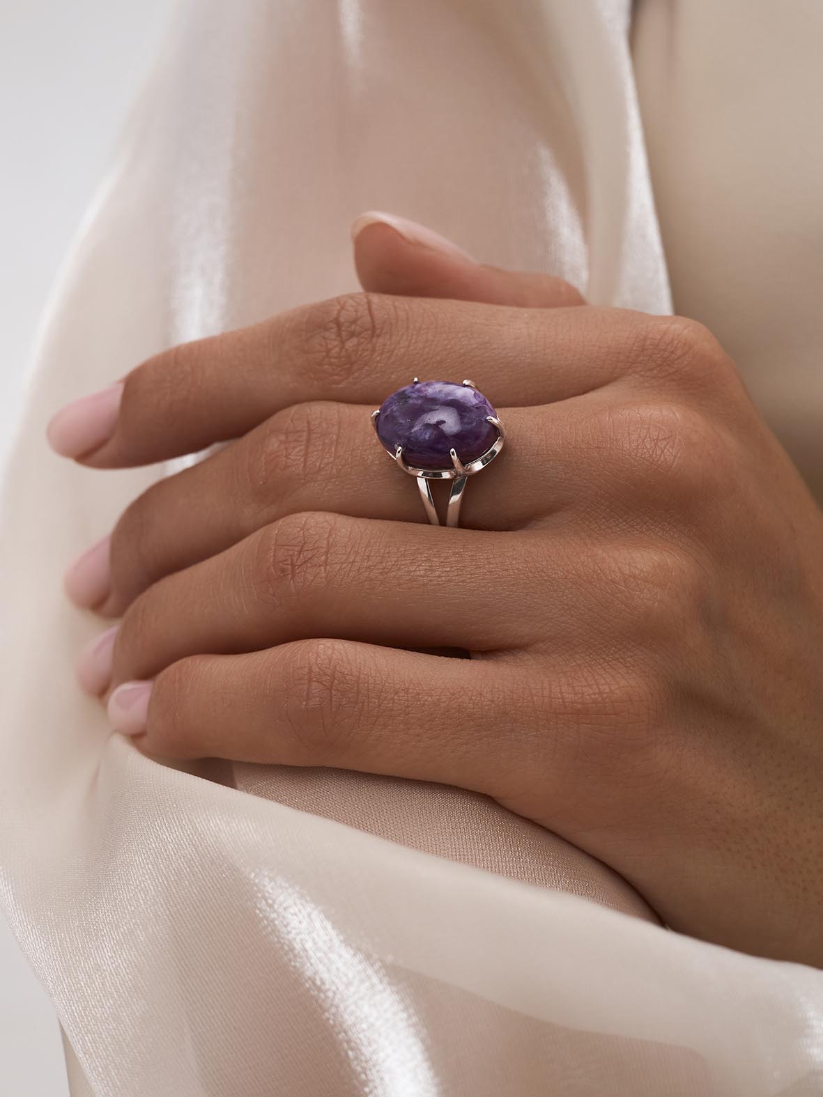 Кольцо для женщин из серебра 925 пробы с чароитом из коллекции Уральские самоцветы артикул 1340461944 от компании KRASNOE