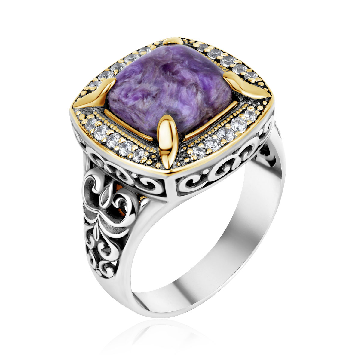 Кольцо для женщин из серебра 925 пробы с чароитом,фианитами из коллекции Династия артикул 1317461933 от компании KRASNOE