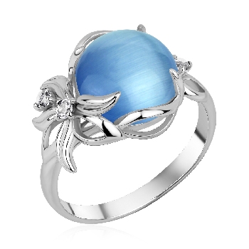 Кольцо для женщин из серебра 925 пробы с кошачий глазом,фианитами из коллекции Flowers (рабочее название) артикул 1340266326-70 от компании KRASNOE