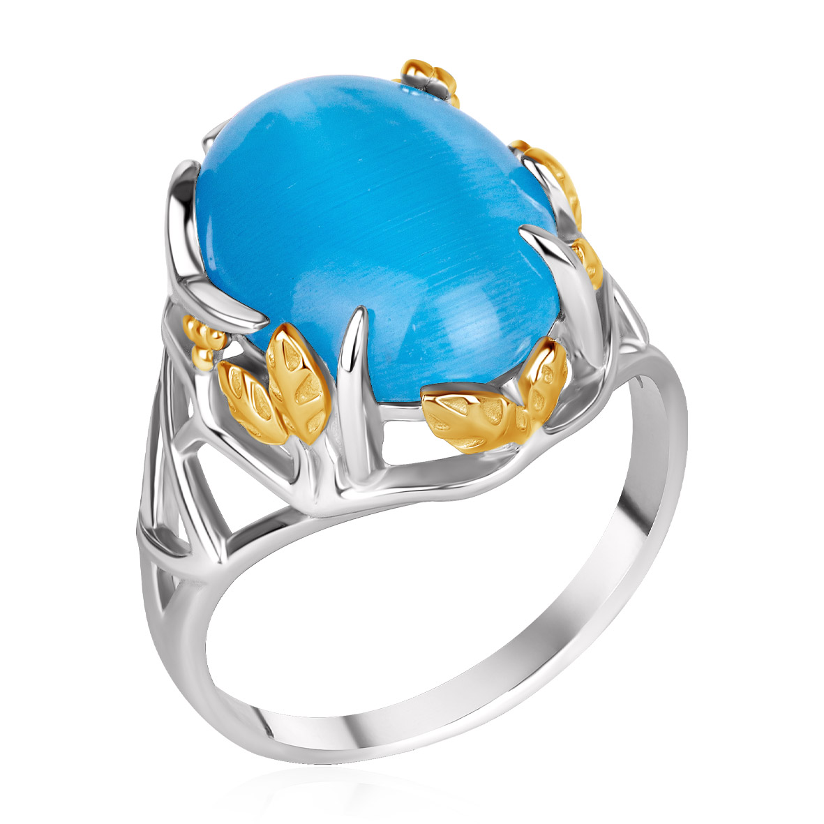 Кольцо для женщин из серебра 925 пробы с кош. глаз гол. синт.ом из коллекции Flowers (рабочее название) артикул 1350266367-70 от компании KRASNOE