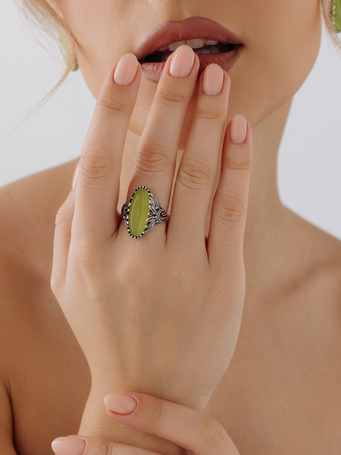 Кольцо для женщин из серебра 925 пробы с кошачий глазом из коллекции Flowers (рабочее название) артикул 1310265726-57 от компании KRASNOE