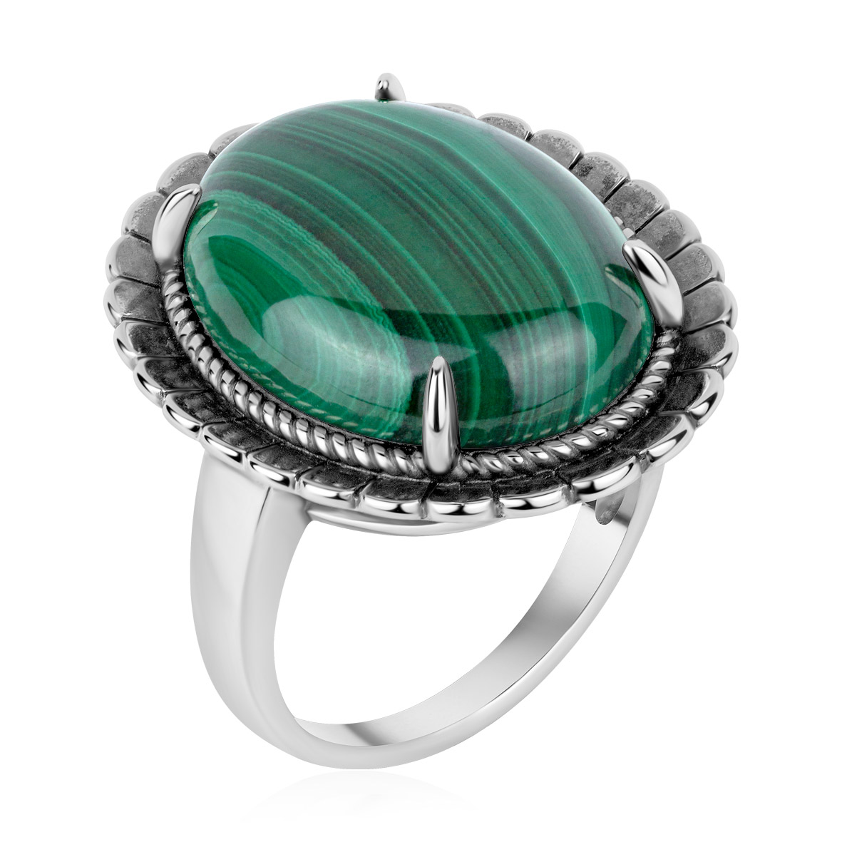 Кольцо для женщин из серебра 925 пробы с малахитом из коллекции Уральские самоцветы артикул 1310386361 от компании KRASNOE