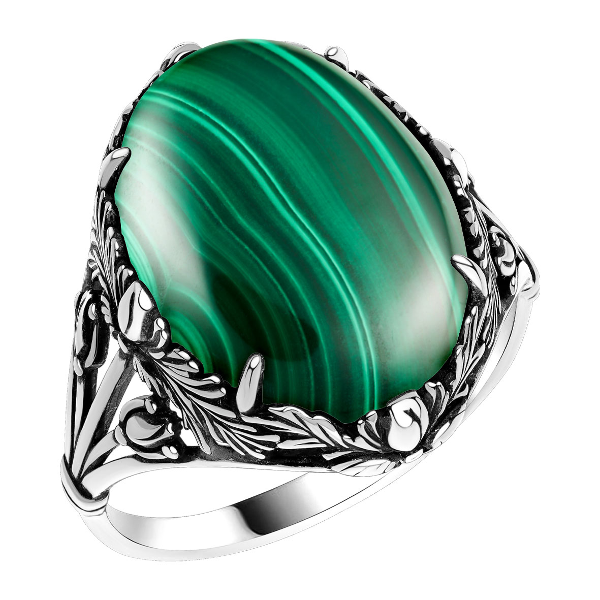 Кольцо для женщин из серебра 925 пробы с малахитом из коллекции Flowers (рабочее название) артикул 1310385150 от компании KRASNOE