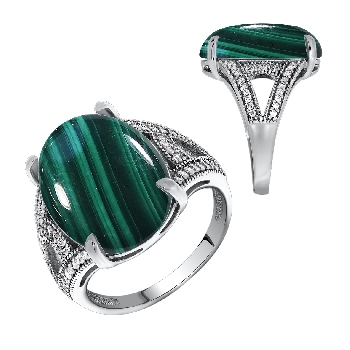 Кольцо для женщин из серебра 925 пробы с малахитом,фианитами из коллекции Уральские самоцветы артикул 1340383537л от компании KRASNOE
