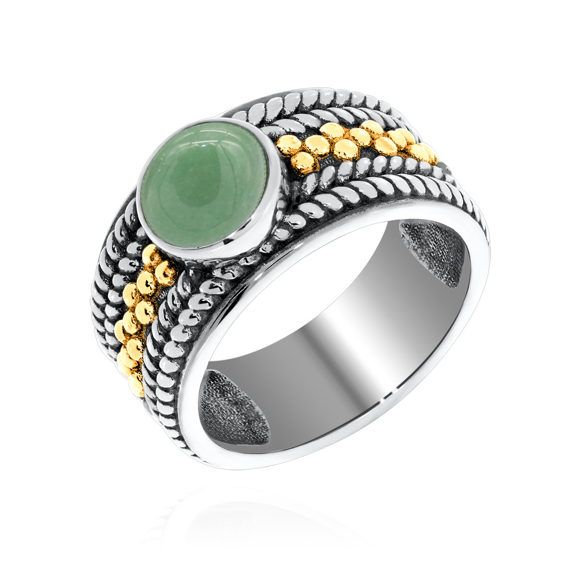 Кольцо для женщин из серебра 925 пробы с нефритом из коллекции Игра фактур артикул 1317351750 от компании KRASNOE