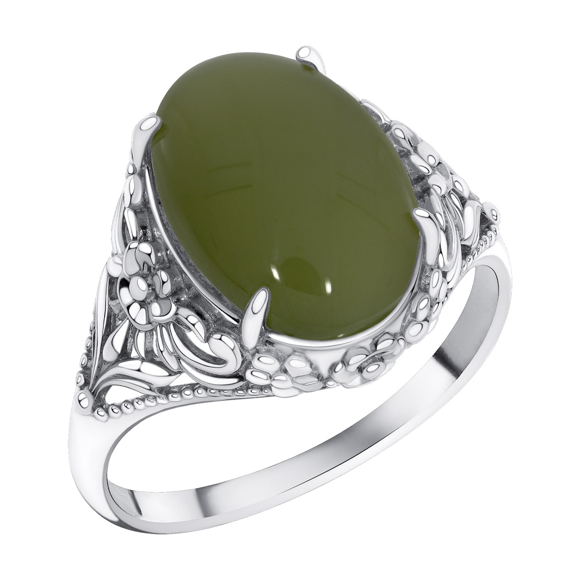 Кольцо для женщин из серебра 925 пробы с нефритом из коллекции Flowers артикул 1340355716 от компании KRASNOE