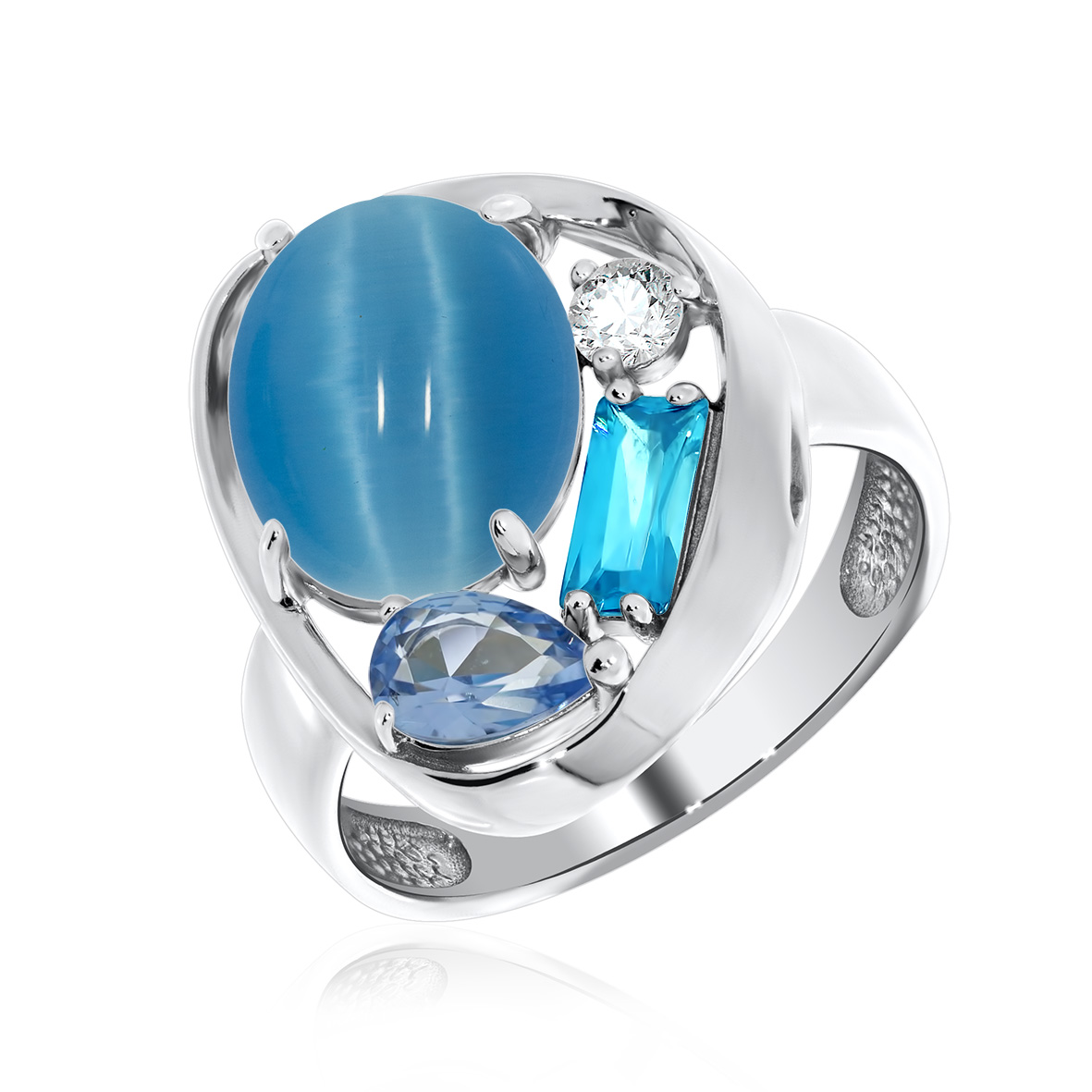 Кольцо для женщин из серебра 925 пробы с ситаллом,кошачий глазом,,фианитами из коллекции Сладкая история артикул 1340261168-70 от компании KRASNOE