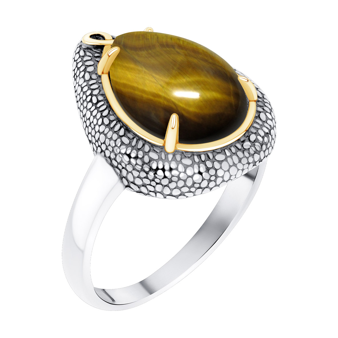 Кольцо для женщин из серебра 925 пробы с тигровый глазом из коллекции Уральские самоцветы артикул 1317325803 от компании KRASNOE