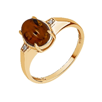 Кольцо для женщин из серебра 925 пробы с янтарём,фианитами из коллекции Уральские самоцветы артикул 1320481973 от компании KRASNOE