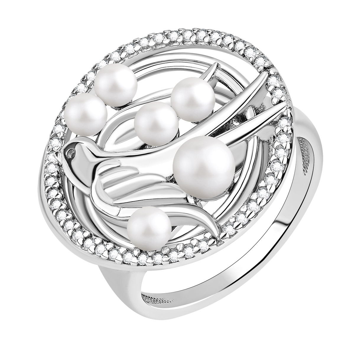 Кольцо для женщин из серебра 925 пробы с жемчугами,фианитами из коллекции Ласточка артикул 1340834600л от компании KRASNOE