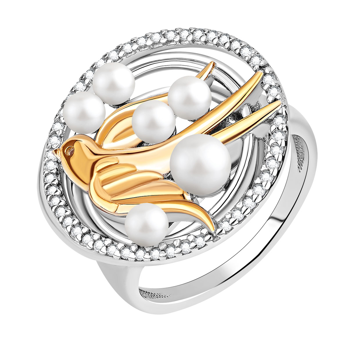 Кольцо для женщин из серебра 925 пробы с жемчугами,фианитами из коллекции Ласточка артикул 1350834600л от компании KRASNOE