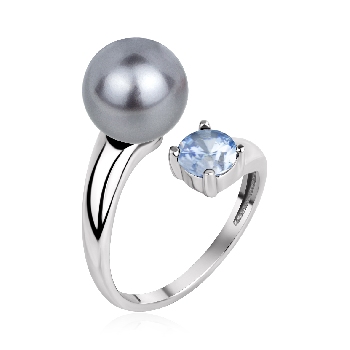 Кольцо для женщин из серебра 925 пробы с жемчугом,фианитом из коллекции Дуэт артикул 1340245657-22 от компании KRASNOE