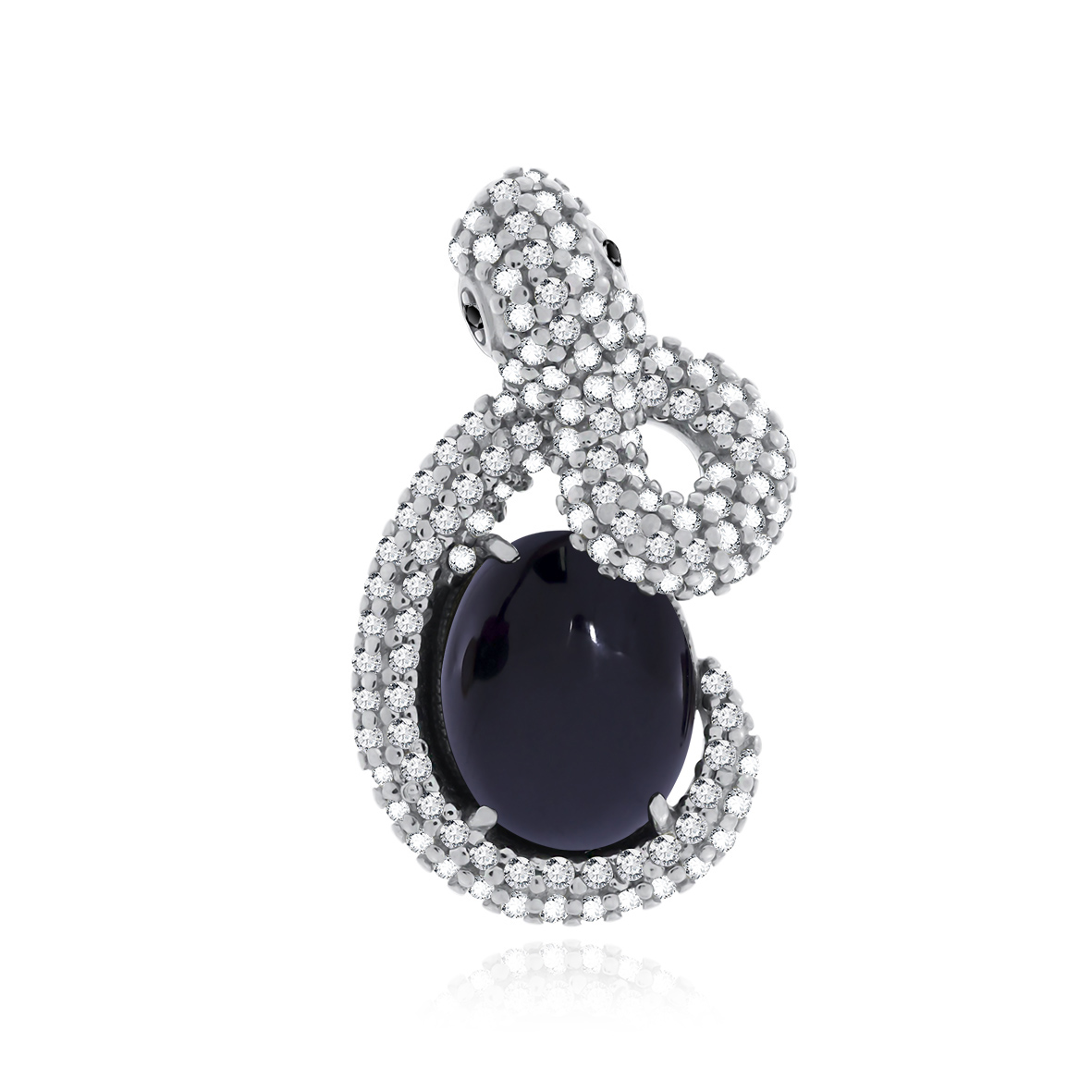 Анималистичная серебряная подвеска в виде змеи! Змей как символ представлен почти во всех мифологиях, и связывается с плодородием, землёй, женской силой с одной стороны, и домашним очагом, огнём. с другой. Свернувшаяся кольцами змея отождествляется с круговоротом явлений. Подвеска будет отличным вариантом для твоего ювелирного гардероба. Подвеску удобно сочетать с леской или цепочкой. Серебряная подвеска создана для активной жизни. Благодаря лаконичности декоративных решений, изделие можно сочетать с разными образами. KRASNOE нежные и трендовые украшения из серебра 925 собственной разработки, дизайна и производства для красоты твоих будней! В коллекцию ювелирного бренда KRASNOE входят кольца на фалангу, колье - чокеры и галстуки, джекеты. Размер вставки; фианит бесцв. круг 1мм; ситалл черный круг 1мм; агат черный овал кабошон 8*10мм.