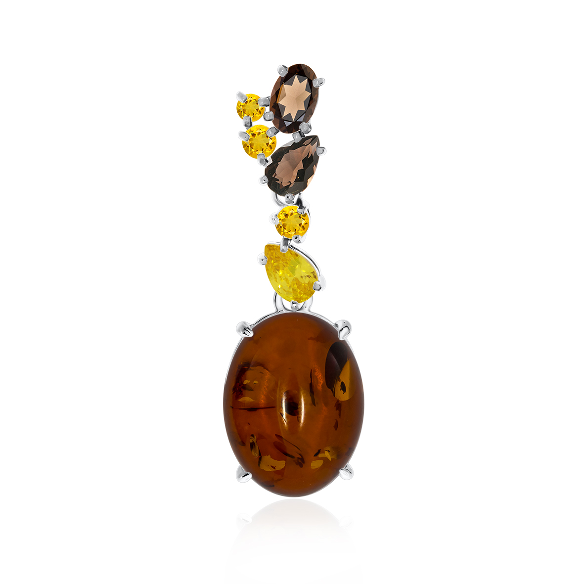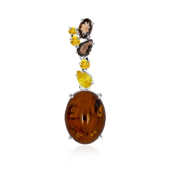 Подвеска для женщин из серебра 925 пробы с янтарём,топазами,,цитринами из коллекции Уральские самоцветы артикул 3340480879-51 от компании KRASNOE