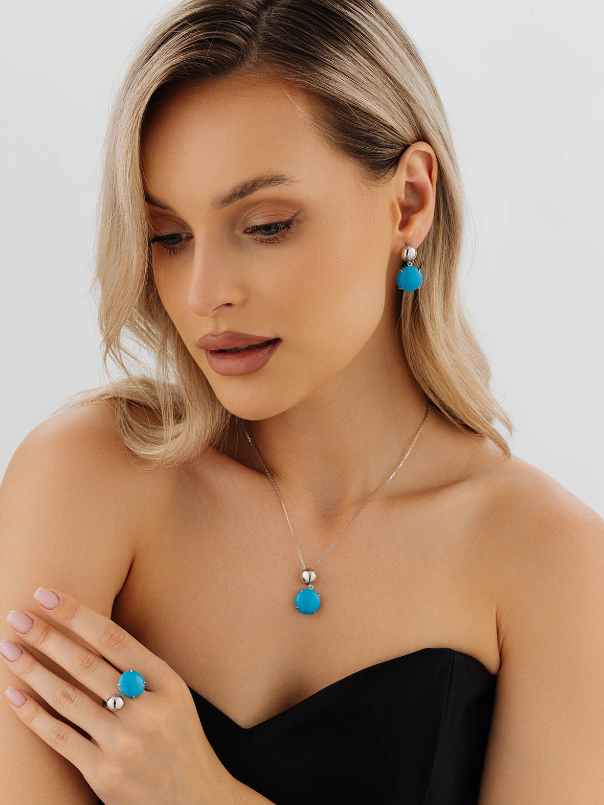 Подвеска для женщин из серебра 925 пробы с бирюзой из коллекции Уральские самоцветы артикул 3340Б26365 от компании KRASNOE