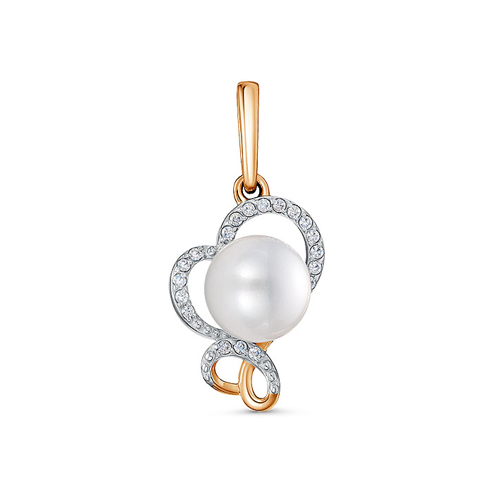 Подвеска для женщин из золота 585 пробы с жемчуг , фианитыом артикул Z3-8619