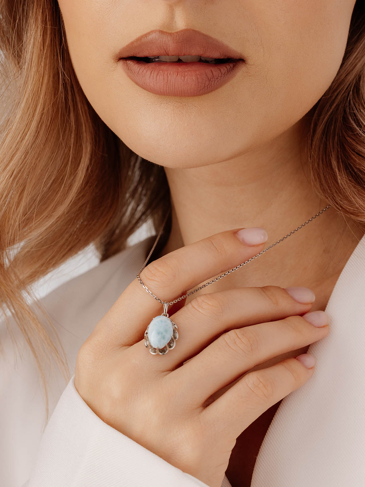 Подвеска для женщин из серебра 925 пробы с ларимаром из коллекции Уральские самоцветы артикул 3340Л15094 от компании KRASNOE