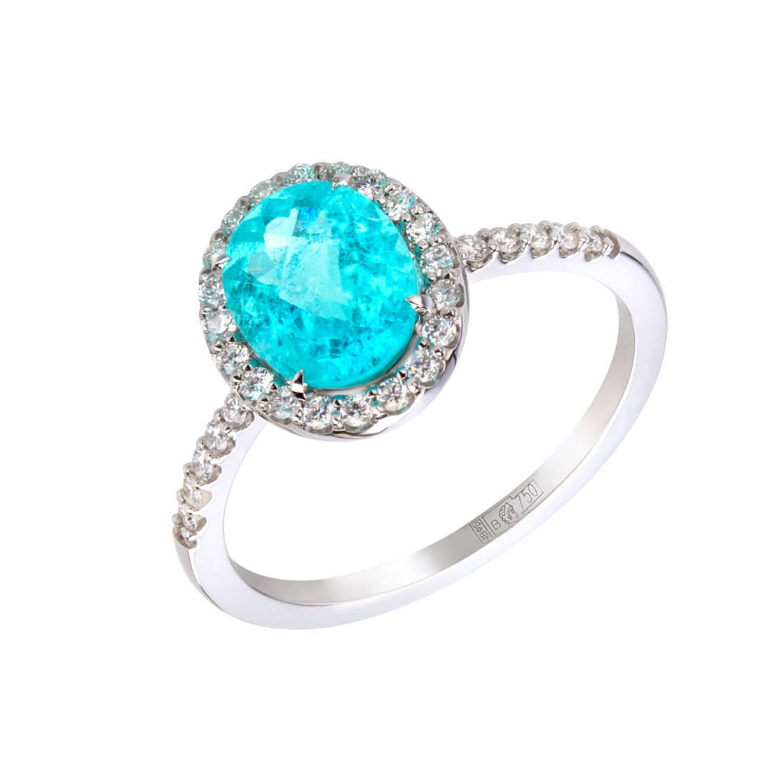 турмалин Параиба невероятно светится, буквально изнутри, навевая голубое свечение, а благодаря огранке унося в далекие лазурные дали. Турмалин Параиба - наилучший экземпляр Турмалина, редкий и особенный. Тот случай, когда сложность форм, геометричность дизайна - абсолютно лишние детали, ведь Параиба и мелкие бриллианты - все что нужно для создания уникального ювелирного шедевра.