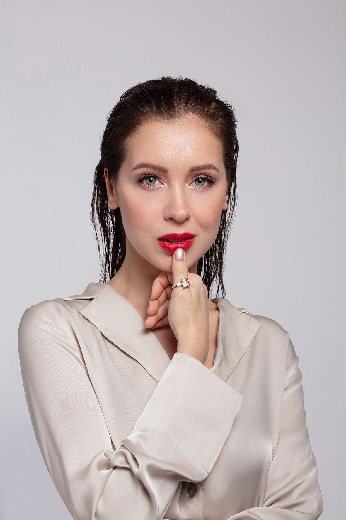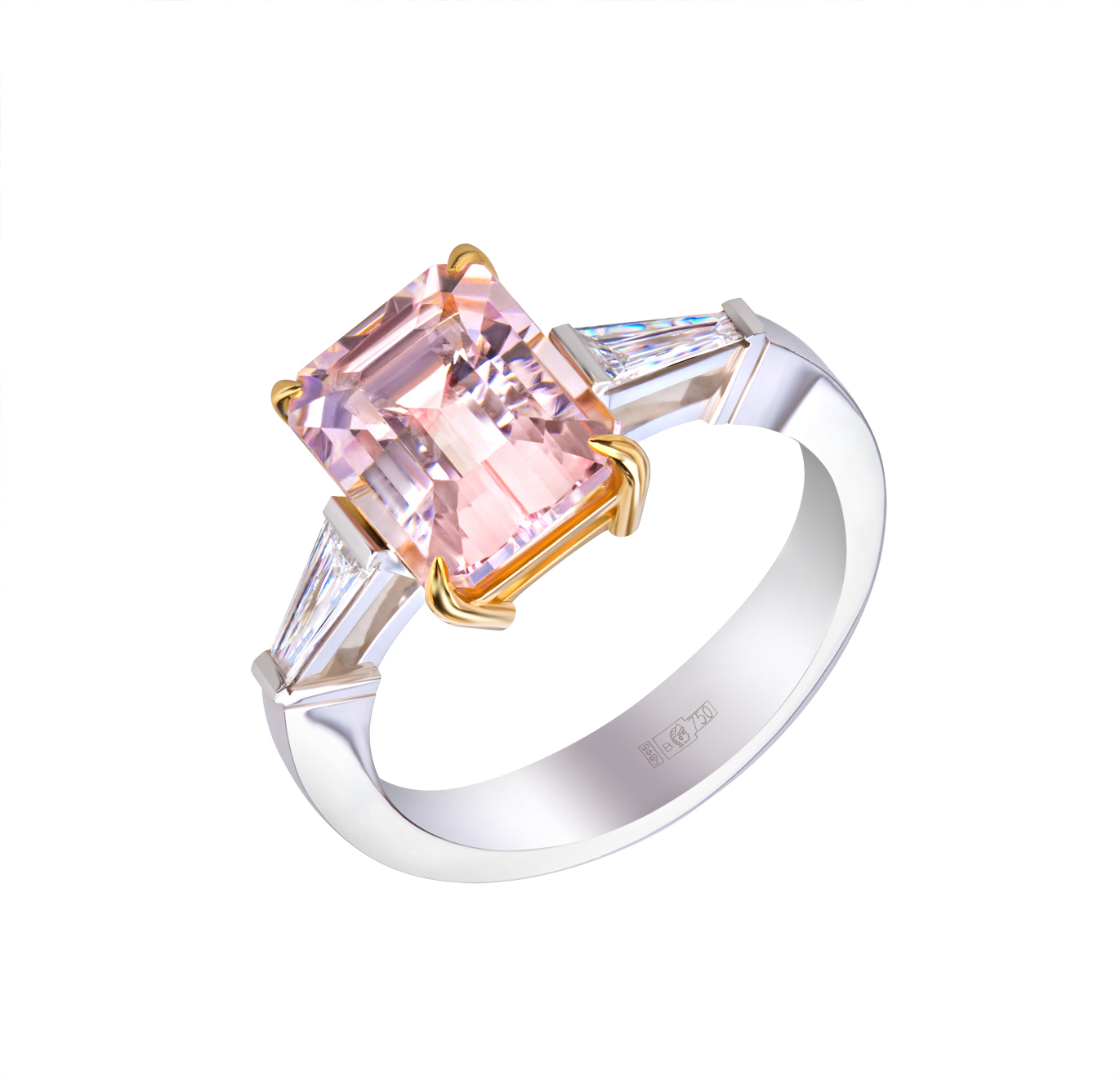 Морганиты - удивительные камни. Данный кземпляр помимо привычных розово-коричневых оттенков играет разными дополнительными цветами: желтым и фиолетовым. А желтый каст камня вносит легкий хаос и вызов традиционной ювелирной классике.