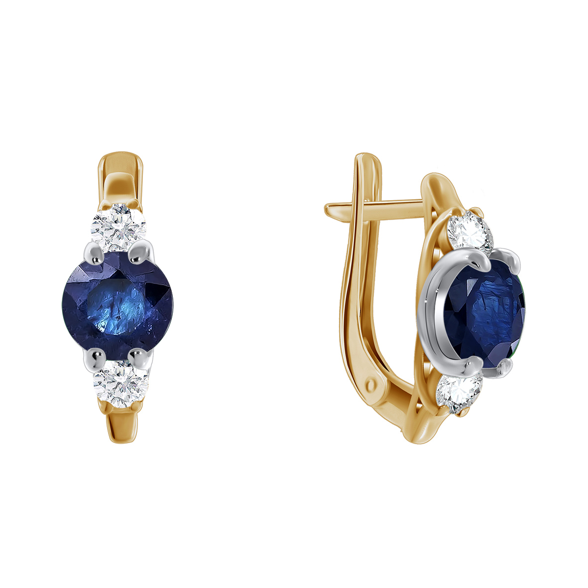 Серьги для женщин из золота 585 пробы с сапфирами,бриллиантами из коллекции Elegans артикул 2149740260 от компании KRASNOE