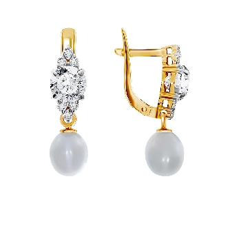 Серьги для женщин из золота 585 пробы с жемчугом артикул 21624654 от компании Алмаз-Холдинг