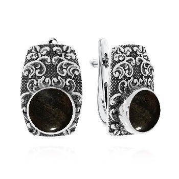 Серьги для женщин из серебра 925 пробы с обсидианами из коллекции Boyarynia артикул 2310321366-20 от компании KRASNOE