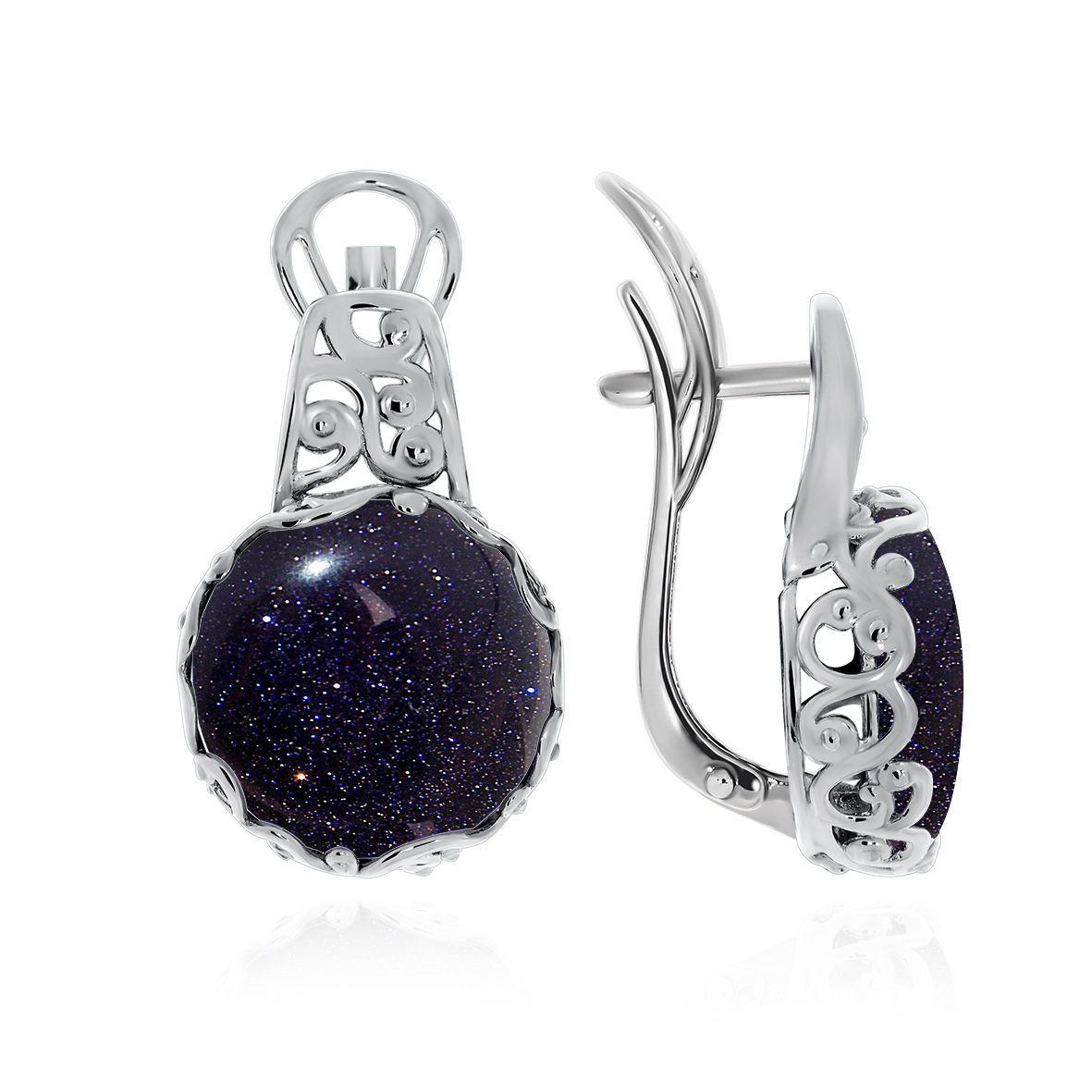 Серьги для женщин из серебра 925 пробы с синтетическими авантюринами из коллекции Уральские самоцветы артикул 2310360934-80 от компании KRASNOE
