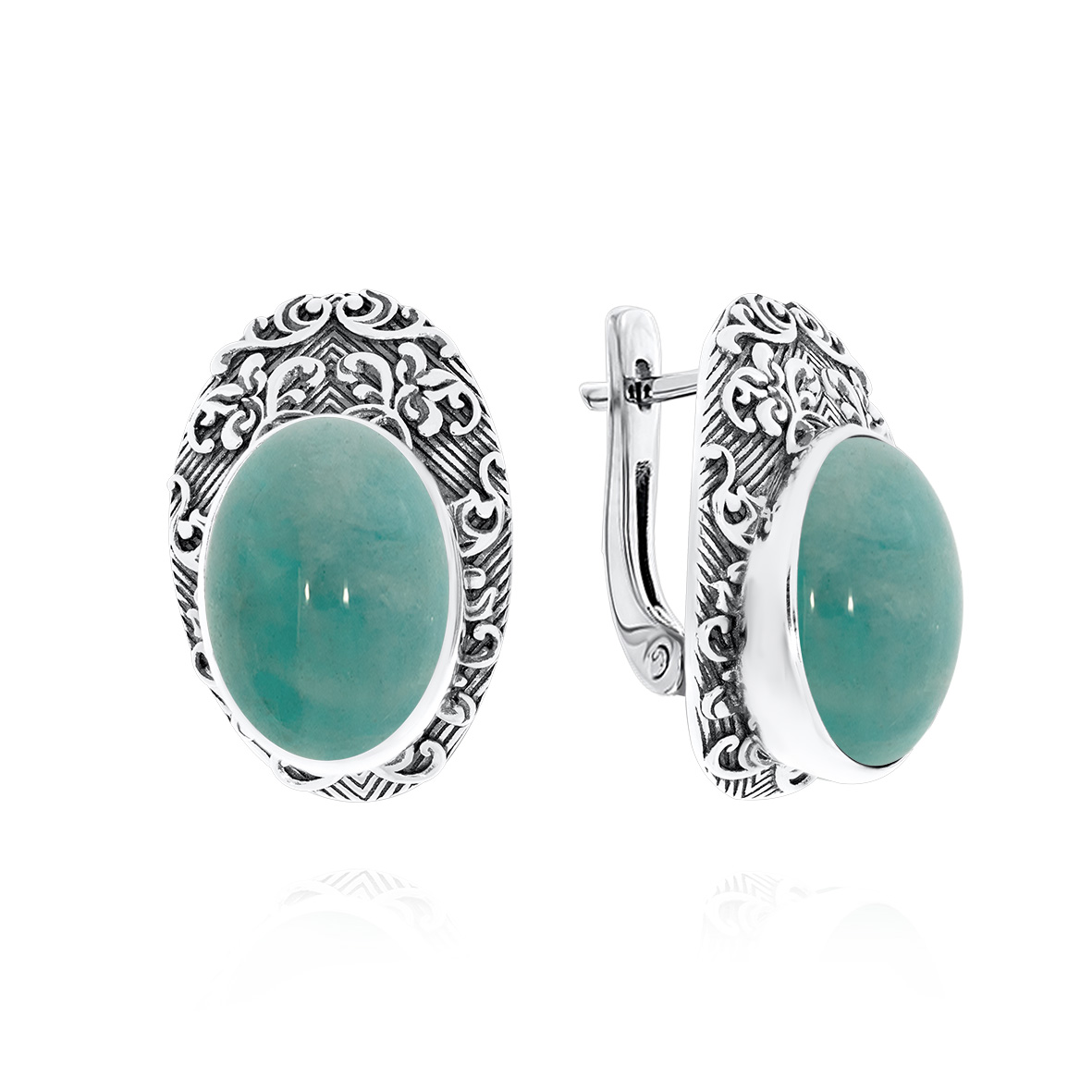 Серьги для женщин из серебра 925 пробы с амазонитами из коллекции Boyarynia артикул 2310371371 от компании KRASNOE