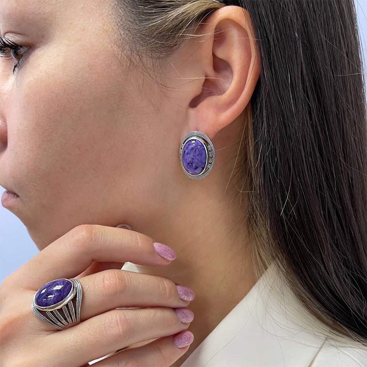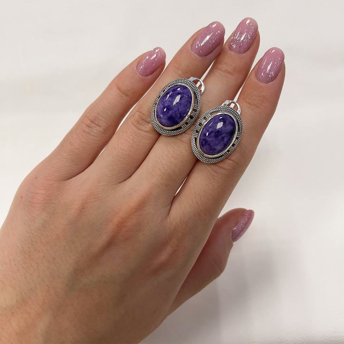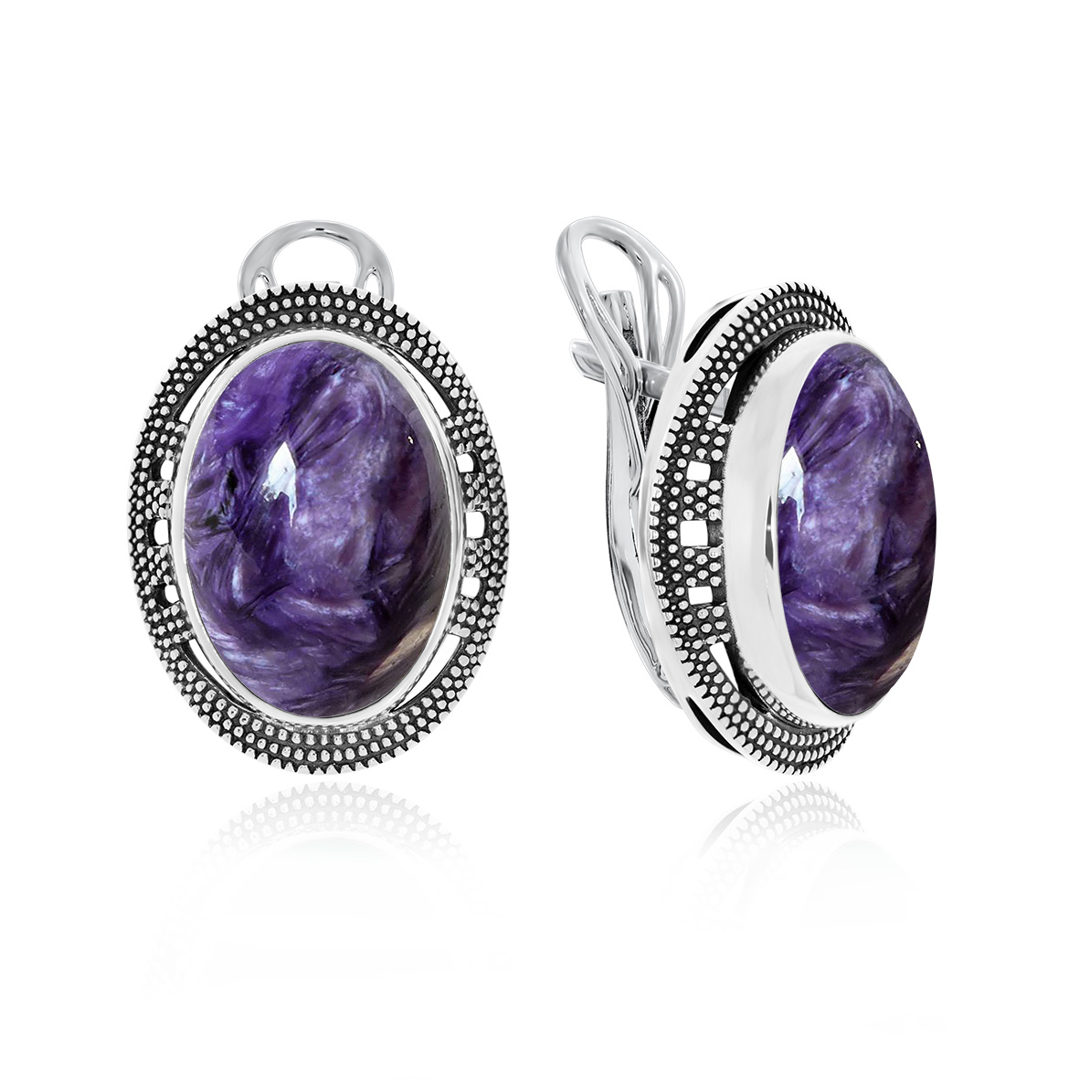 Серьги для женщин из серебра 925 пробы с чароитами из коллекции Династия артикул 2310460981 от компании KRASNOE
