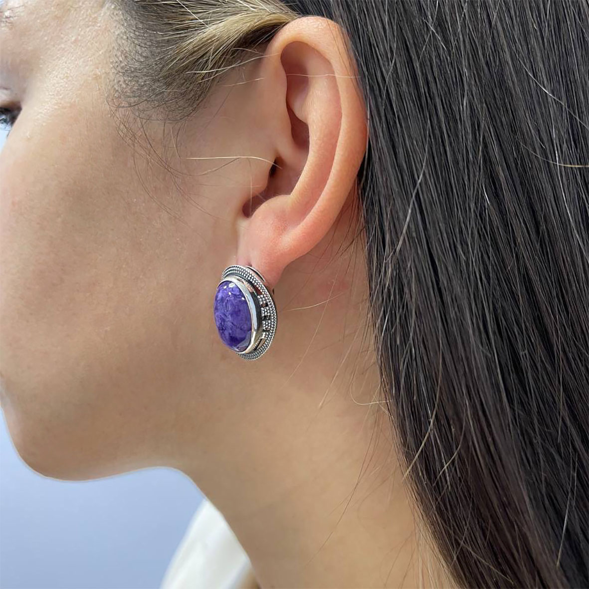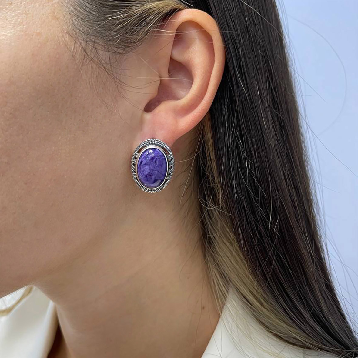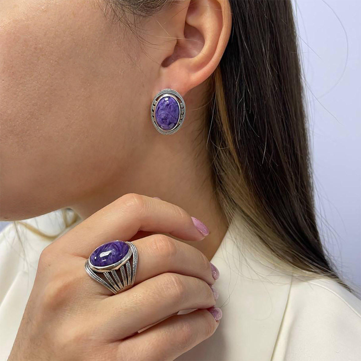 Серьги для женщин из серебра 925 пробы с чароитами из коллекции Династия артикул 2310460981 от компании KRASNOE