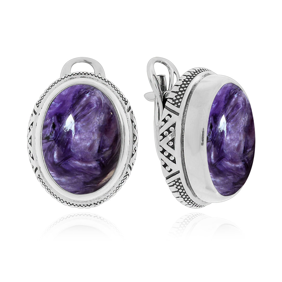 Серьги для женщин из серебра 925 пробы с чароитами из коллекции Династия артикул 2310461488 от компании KRASNOE