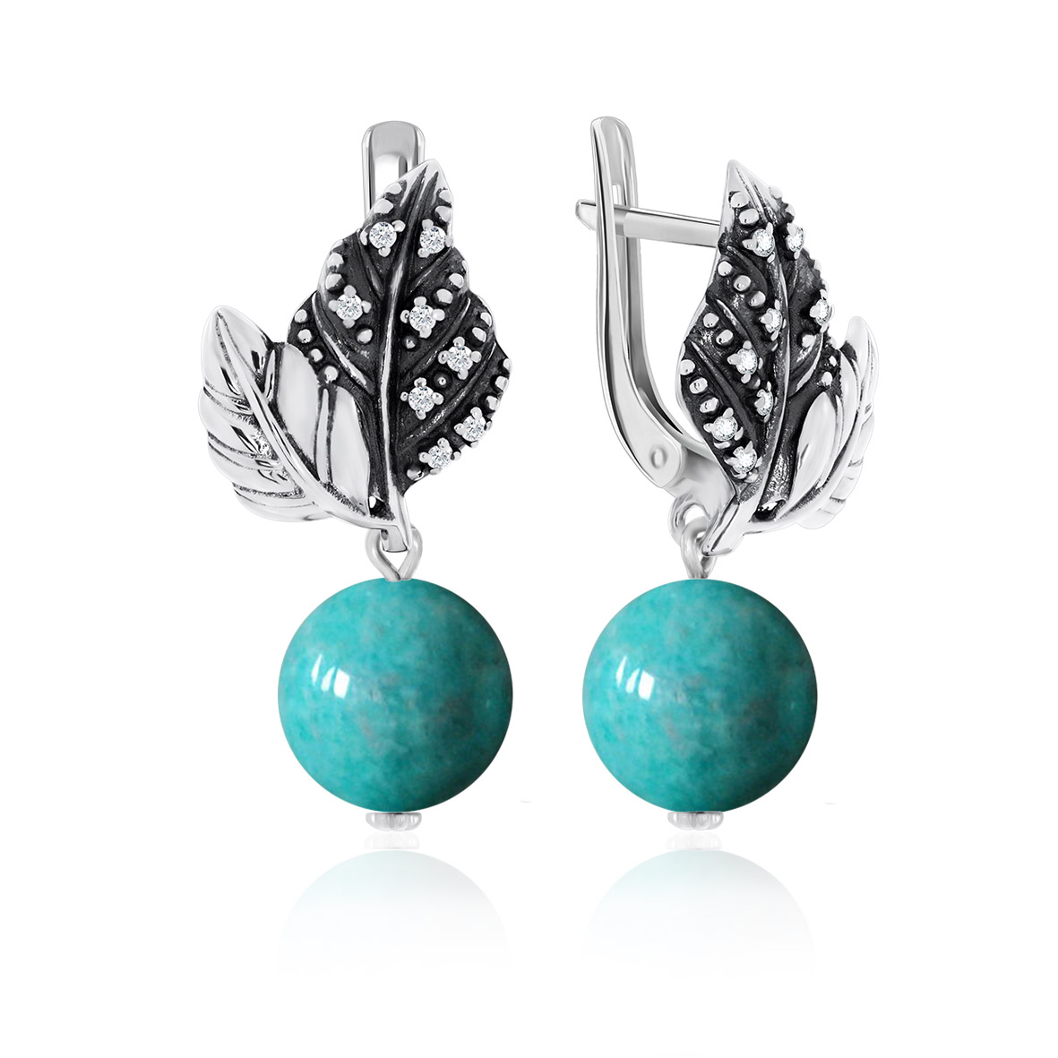 Серьги для женщин из серебра 925 пробы с агатами,фианитами из коллекции Уральские самоцветы артикул 2310652269-77 от компании KRASNOE