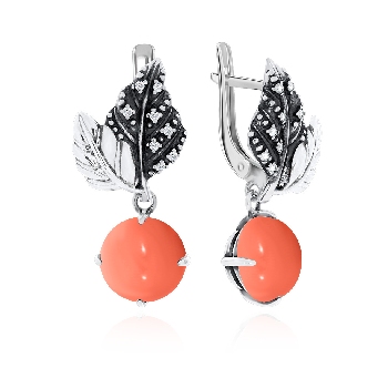 Серьги для женщин из серебра 925 пробы с кораллами,фианитами из коллекции Dinamic артикул 2317282265 от компании KRASNOE