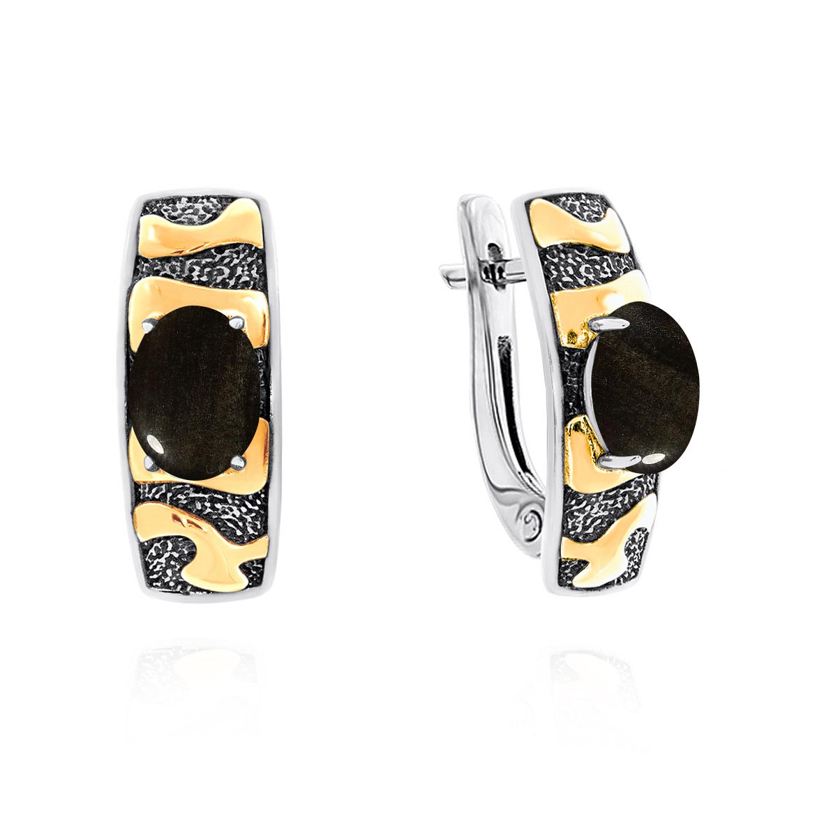 Серьги для женщин из серебра 925 пробы с обсидианами из коллекции Игра фактур артикул 2317321758-20 от компании KRASNOE