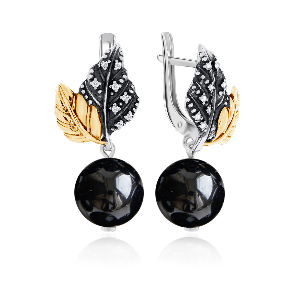 Серьги для женщин из серебра 925 пробы с агатами,фианитами из коллекции Уральские самоцветы артикул 2317392272-20 от компании KRASNOE