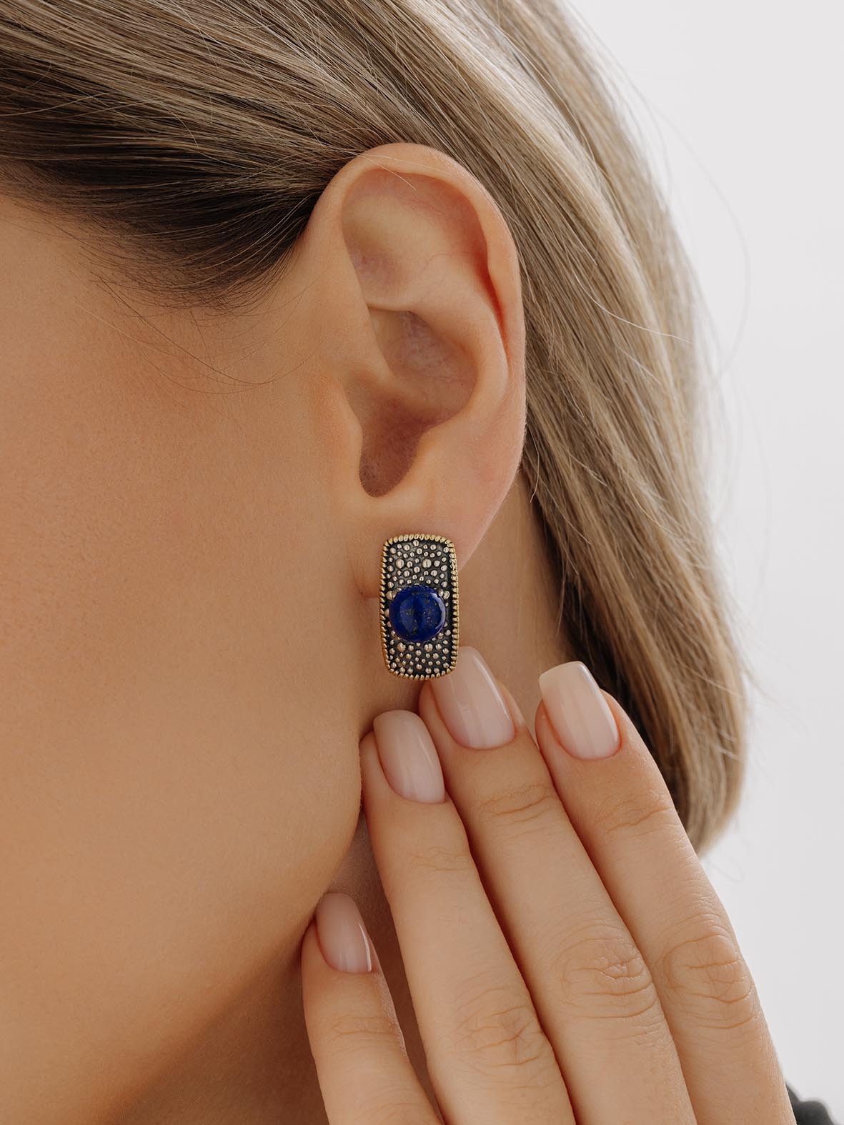 Серьги для женщин из серебра 925 пробы с лазуритами из коллекции Игра фактур артикул 2317471751 от компании KRASNOE