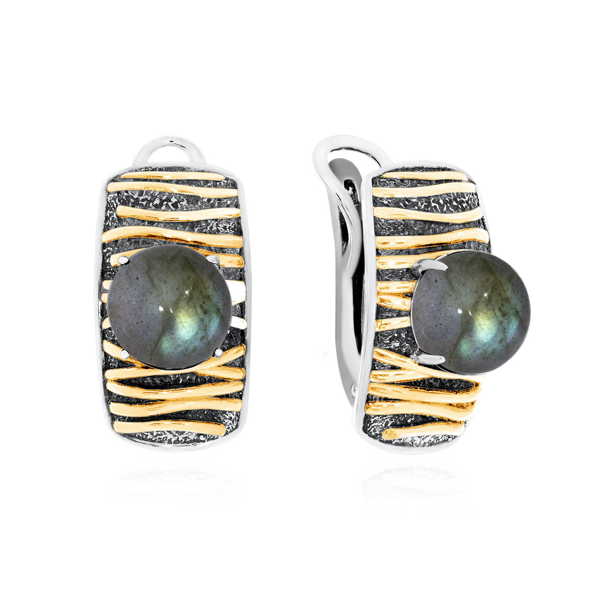 Серьги для женщин из серебра 925 пробы с лабрадоритами из коллекции Игра фактур артикул 2317Л01752 от компании KRASNOE