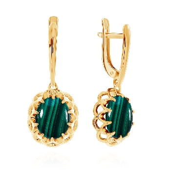 Серьги для женщин из серебра 925 пробы с малахитами из коллекции Уральские самоцветы артикул 2320381541-1 от компании KRASNOE