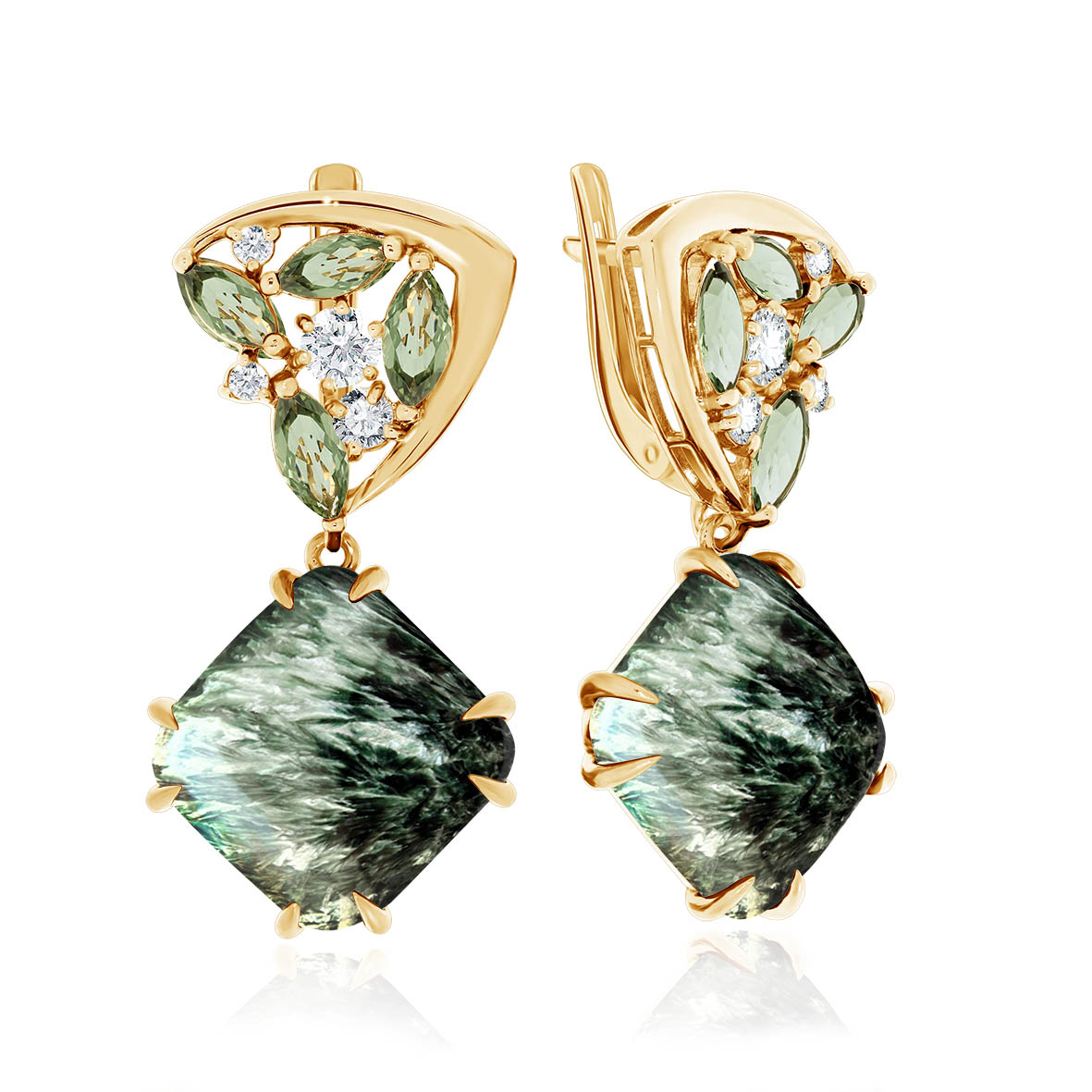 Серьги для женщин из серебра 925 пробы с серафинитами,ситаллами,,фианитами из коллекции Уральские самоцветы артикул 2320920974 от компании KRASNOE