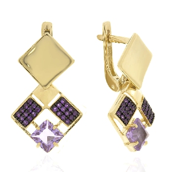 Серьги для женщин из серебра 925 пробы с аметистами,ситаллами артикул 2321064755л от компании KRASNOE