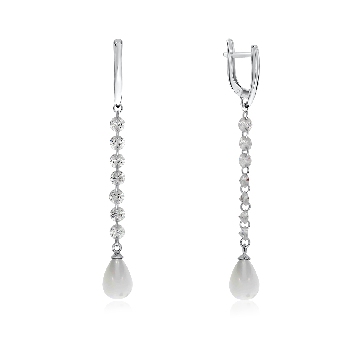 Серьги для женщин из серебра 925 пробы с жемчугами,фианитами из коллекции Невесомость артикул 2340050613 от компании KRASNOE