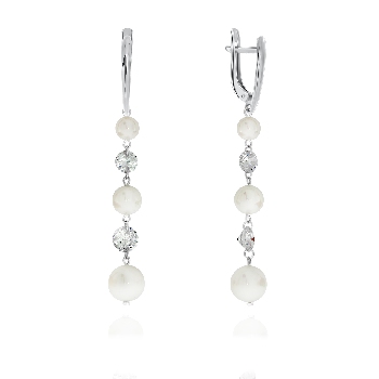 Серьги для женщин из серебра 925 пробы с жемчугами,жемчугами,,фианитами из коллекции Невесомость артикул 2340050621 от компании KRASNOE